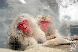 温泉につかるサルの群れ
