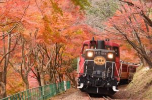 ◎嵐山 紅葉 (11月中旬~12月上旬)トロッコ列車に乗って紅葉巡り 川下り(市内から10キロ)
