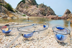 〇岩美町(鳥取市から22キロ) 透明カヌーで海岸洞窟