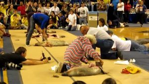 羊の毛刈り競争 一人で4頭の羊の毛を借る 記録は6分28秒 優勝賞金は2万1千ドル