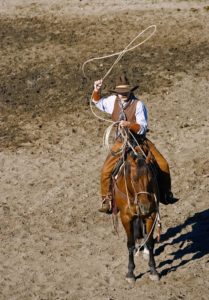 牧場体験ツアーではカーボーイの特技でもある投げ縄が披露される