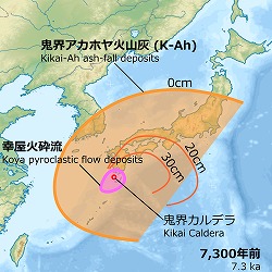 7300年前(紀元前53世紀)九州 鬼界カルデラが大噴火を起こし九州南部の縄文人が絶滅したと推測されている