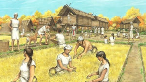 弥生式の米の栽培で生活が安定し人口は倍増した およそ人口 30万から60万へ しかし この時代 農機具が武器へと変わり農地をめぐる戦争も始まる