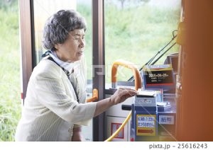 しばらくしてバスが停留場に止まると数人の乗客が乗り込んで来ました。するとバスの中では若者が数人〃パッ〃と席を立ちました。