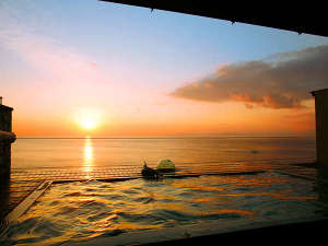 そのときは まるで夕日と一緒に湯船に漬かっているような気分でした。その後 夕日は〃ゆっくり〃と時間をかけて暗い海の中へと沈んで行きました。