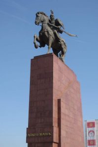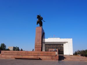 その後は 自由の女神像が置かれていたが 2011年 独立20周年を記念してマナス王像に建て替えられた