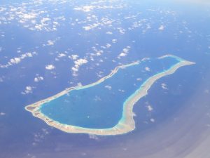 マジェロ(日本から4600キロ)人口2万5千 マジェロ環礁 57の島が100キロにわたってつながっている 太平洋の真珠の首飾り 島で一番細いところは数メートル