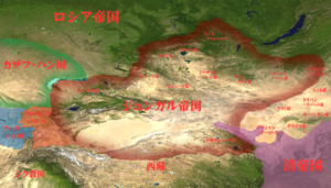 清は ロシア ウラジオストク ハバロフスクとモンゴル全土 キルギス共和国 カザフスタン アフガニスタン タジキスタン ミャンマー北部 インド北部 を含む東洋の半分は清国の支配下となった