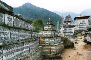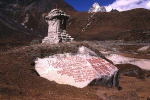 ヒマラヤ登山の途中 チベット仏教の祭壇が作られてい