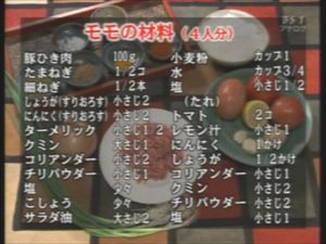 モモ(水ギョーザ 皮に卵を入れる タカリ料理の一種 カレーソースをかけて食べる)