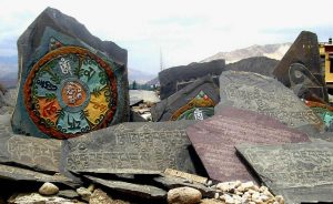 町の人はみんな英語が上手 石に掘られたお経の文字 マニ石