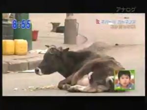 町に牛が多いが 牛は神様なので決して追い払ってはいけない