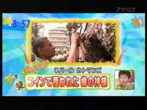 壁にコインを釘で打つと歯にいいとされている コインの木