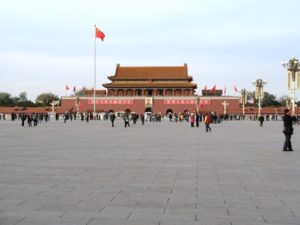 (天安門広場) 白い花崗岩が敷き詰められている 一度に50万人が集まることができる