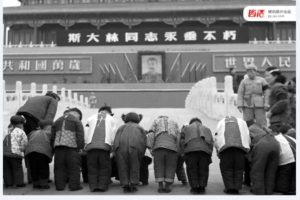 喪に服すという意味で毛沢東の代わりにスターリンの肖像画が掲げられた。