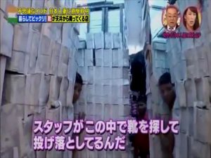 4000足の靴がストックされているされている 穴は2階から4階 まで繋がっている