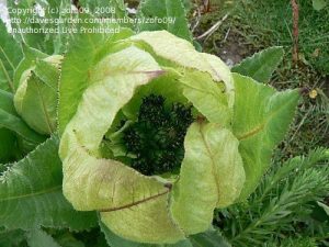 葉の中の黒い花は虫をおびき寄せる強いにおいを放っている