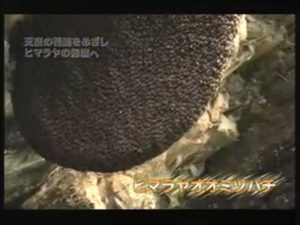 登山の途中 ガンジス川の源流となる水が流れている オオミツバチの巣は直径1メートルの円盤状
