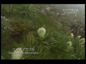 実際の花は白い葉っぱに包まれた中にある 世界でもヒマラヤにだけ咲く花