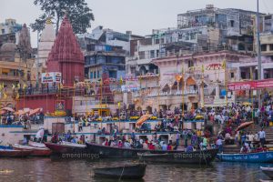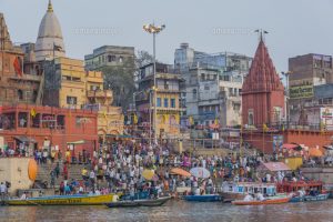 ガンジス川では 朝一で沐浴を行う人が多い 多くの巡礼者が集まる