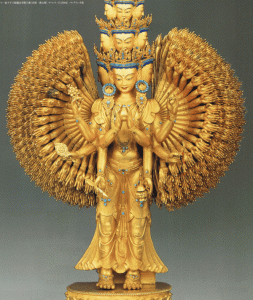 千手観音の手のひらが避けてできた目には修行の厳しさを伝えている 阿修羅道の壁画