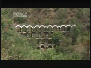 (石橋)最大の所は高さ23メートル 当時は鉄橋が支流であったが トンネルを掘って余った石を利用し作られた