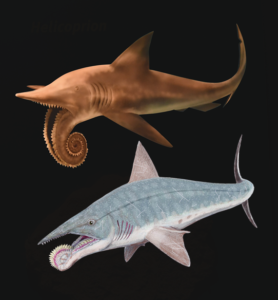 (渦巻歯のサメ ヘリコプリオン)化石のみ発見されている