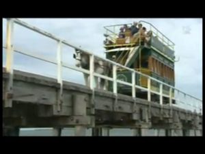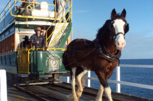 木造の桟橋は630メートルある 桟橋の上では馬が1台5トンの二階建てのトラムを引く