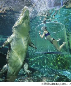 (クロコザウルスコープ)( ケージ オブ デス 30分 約1万円) 強化ガラスの中に入り水中からワニを観察する