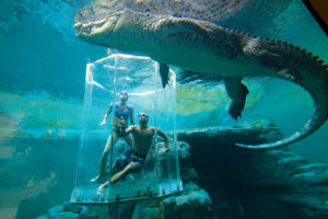 ガラスケースの檻の中に入り 巨大ワニをまじかに見ることが出来る