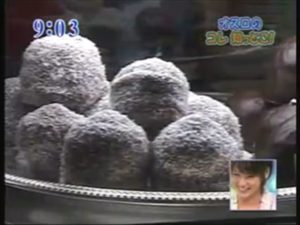 作り方は卵白を阿波楯メレンゲ場にし砂糖と観点を混ぜプレスする 仕上げにチョコレートデコーディングしココナッツ粉をまぶして完成