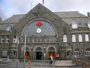 (ベルゲン駅) ドーム屋根 壁には昔のベルゲンの様子が描かれている