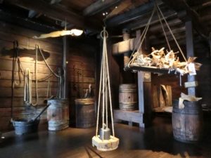 特に乾燥ダラは重要な輸出品であった 乾燥ダラは屋根裏で保存 かつてハンザ商人が使っていた建物は今は土産物店となっている