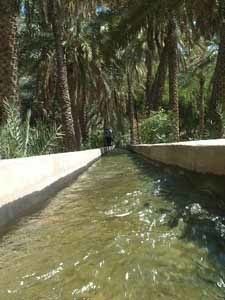 洗濯や皿洗いに使った排水はヤギなどの家畜の飲み水となる 水路の終点はナツメヤシ畑となる