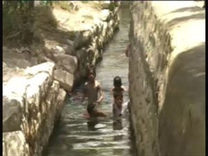 かんがい設備は手で掘られた 水路は村の血管とも言われている 家の間を縫うように流れている