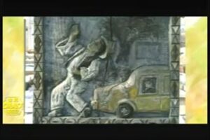 なぜタクシーは私をはねってしまったのか不思議そうな顔をする女の子の彫刻が彫られていた