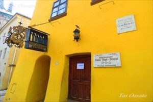 旧市街の一角にある 今は観光客が見つけやすいようブラドの顔の石像が建っている