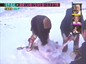 マイナス20度の中 素手だけでトナカイを絞めていく 約10分で見事に解体する