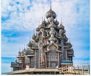 キジ島(ロシア ヨーロッパ サンクトの北) 木造建築の古い教会 葱帽子屋根 〇ポクロフスカヤ教会 |