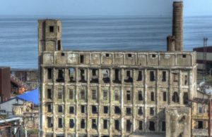 Остатки бывшей фабрики Oji Paper Moka в Холмске