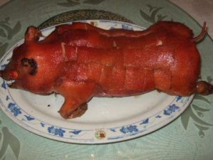 子豚の丸焼き268元 酢豚38元 ワニのあんかけ38元