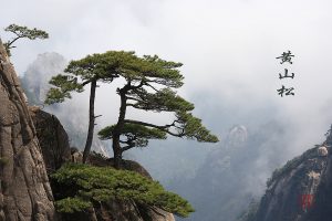 かたい岩山から松の木が生える 土なしで生える松 黄山にのみ生息 夏でも20度ほど