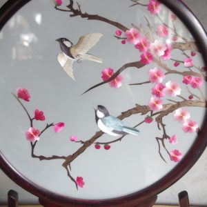 シルクの刺繍 糸は髪の毛の数分の一の細さ 刺繍はほぼ写真に近い 一作品作るのに100万から1000万回縫う 2人で一年かかる