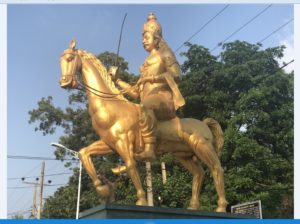 (ジャフナ王国の遺跡群)馬に乗る黄金のサンギリ像が建っている