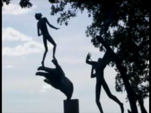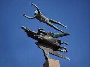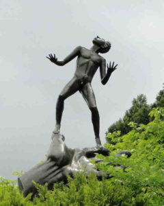 (ミレスの彫刻作品 1875年)高い支柱を土台にした銅像が特徴