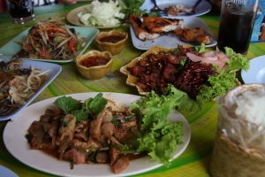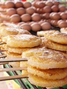 イサン料理 米を使った辛い料理が多い カオチー 卵焼きご飯(卵ご飯を五平落ちのように焼いたもの)