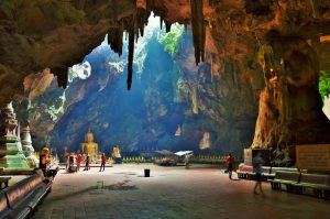 〇黒い龍の様な蝙蝠の大群カオチョンプランKao chong Pran 丘のふもとには寺 丘の上には洞窟があり夕方 洞窟から260万匹の蝙蝠が一斉に飛び立つ