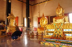 (ワットシャロン)仏像に霧吹きをし金箔を張り付ける 夜 路上のお立ち台にニューハーフ 〇ウミガメ産卵