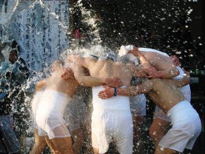 真夏に行われる水かけまつり (1)