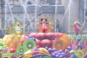 そのころ東京ディズニーシーの水辺のステージでは高さ数メートルの大きなフルーツが〃ポカポカ〃と水に浮かんでいました。